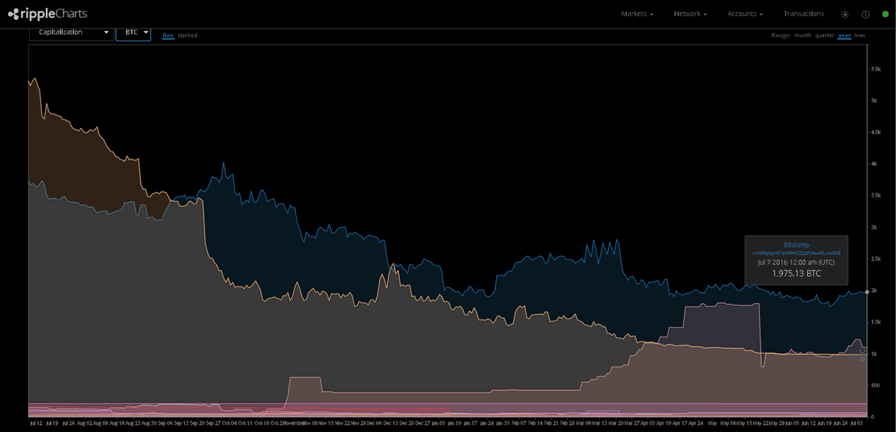 「Bitstamp(1,975.13 BTC)」「Mr. Ripple(1,100.57 BTC)」「BTC 2 Ripple(988.03 BTC)」